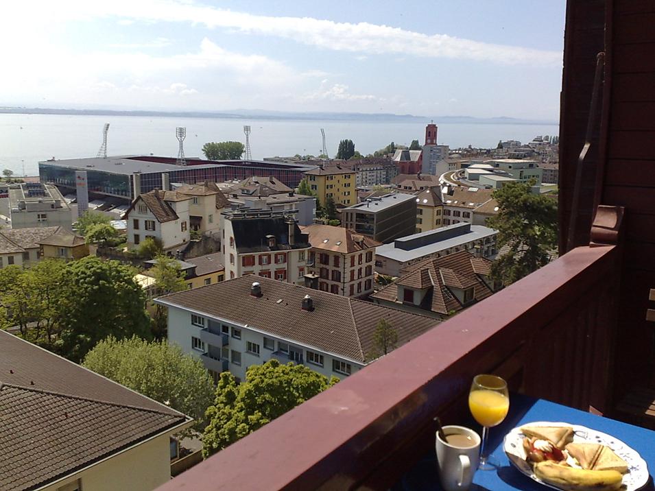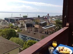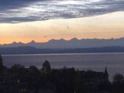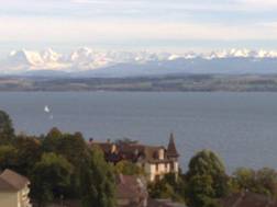 On a sunny day I can look out over the city, the lake, and in the distance the whole snow capped mountain range of the Alps, about 100 kms away!