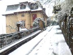 In the middle of this slope is an extra steep little hill which is my neighbourhood: narrow winding steep roads with large old beautiful houses, about a century old (la Belle Epoque).
