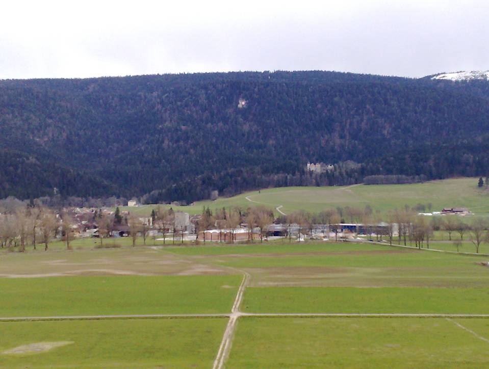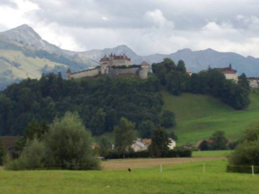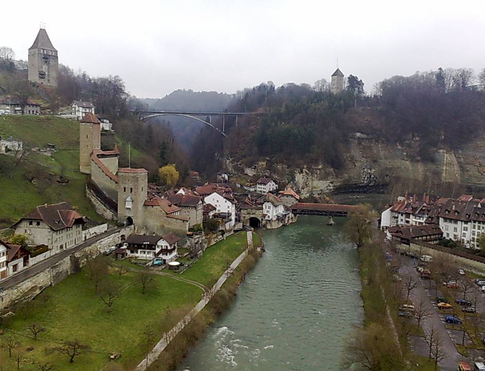 Fribourg. My teacher Marie-Noëlle lives on the other side of the lake near Fribourg (Freiburg), not to be confused with the other ones in Germany or France.