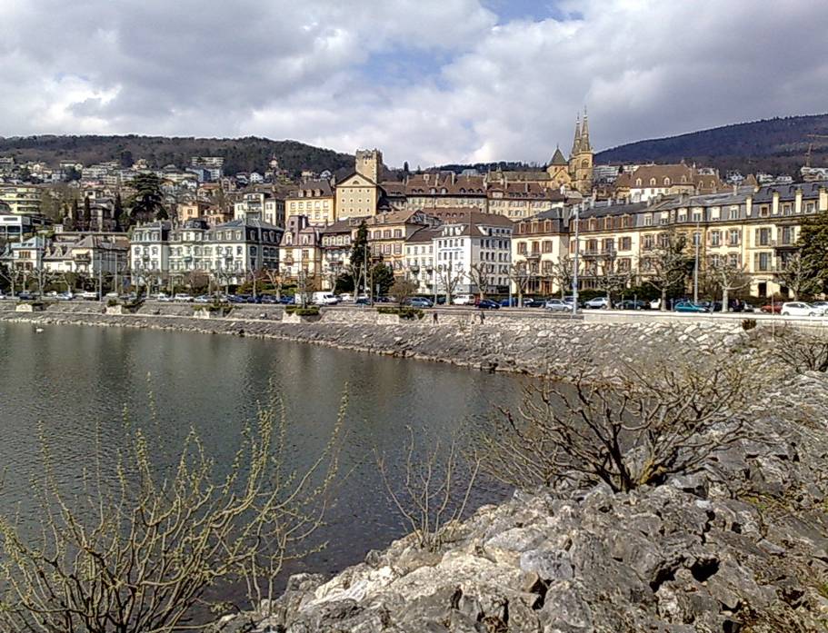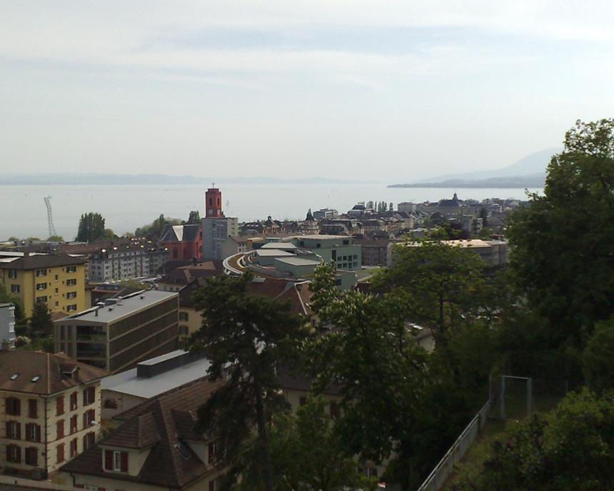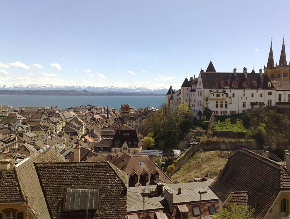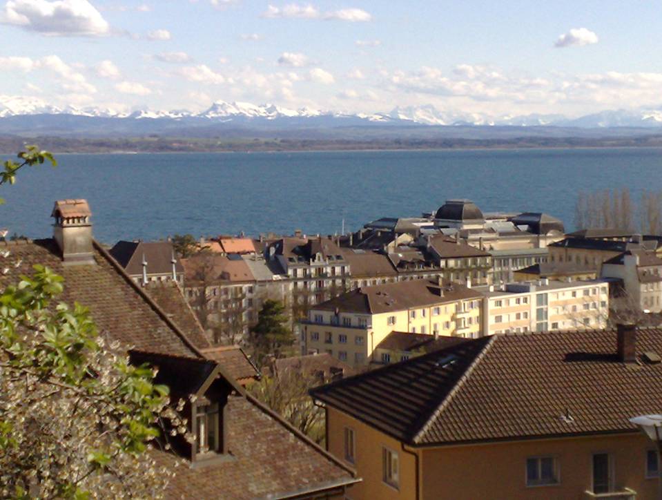 My new neigbourhood. Most of Neuchatel lies on a slope along the coast of the lake.