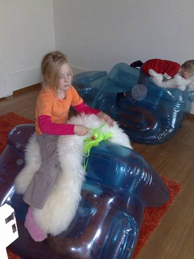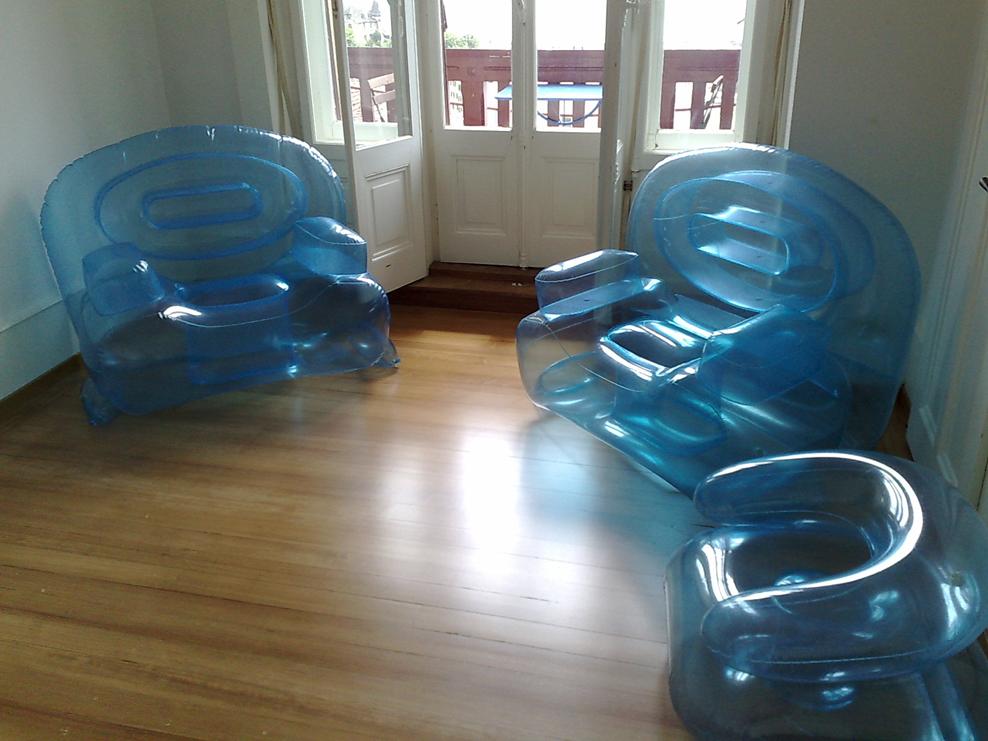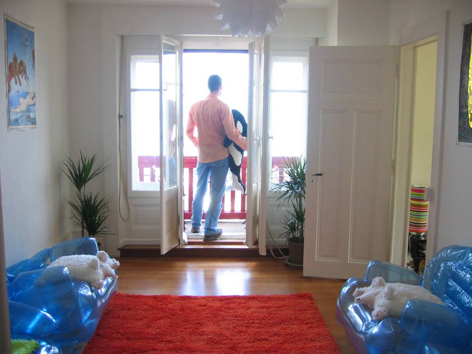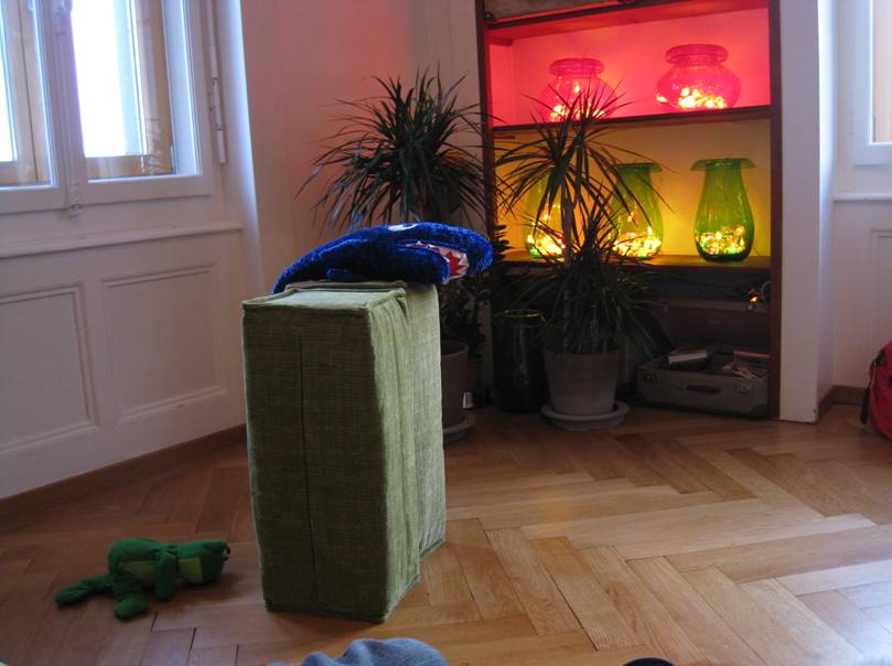 An empty house. I came to Switzerland with nothing but a suitcase of clothes, but in the mean time I have brought another suitcase with...inflatable furniture.