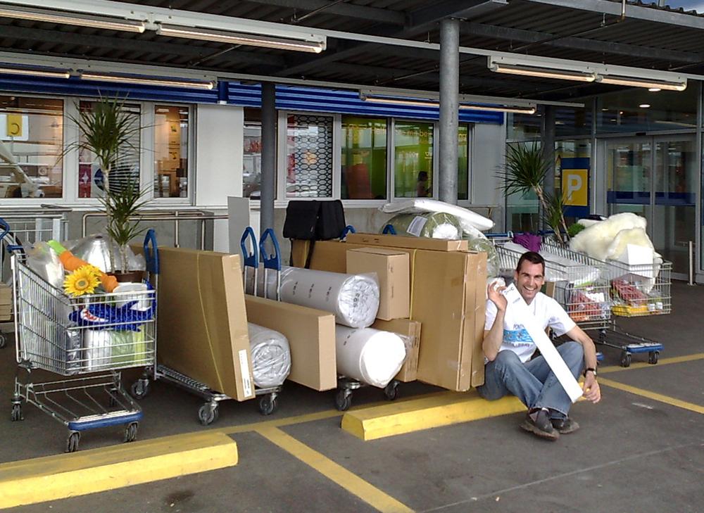 Some serious speed-shopping ans speed-screwing. The first picture looks as if a whole bunch of Ikea customers have left their loaded carts unattended and have asked me to stand guard, but in fact all the carts have a common owner, since I spent my first salary in three hours at Ikea.