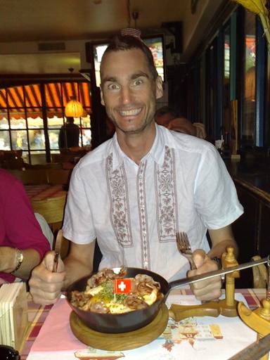 We stayed in a chique hotel in the poshy place of Vevais at the lake of Geneve, we drove around in a cabrio and ate lobster, all at the expense of the TV channel.