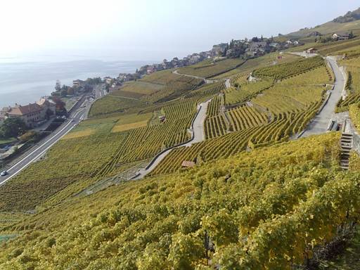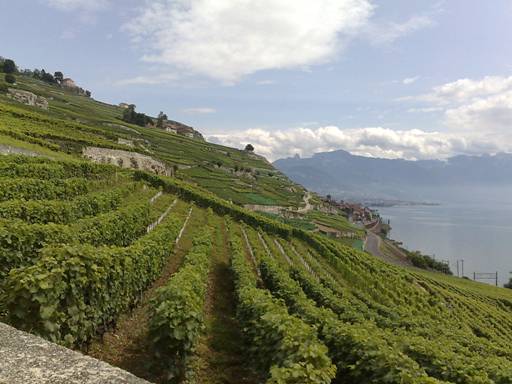 Vevais and Montreux. Picturesque hillside vineyards on the lakeside.
