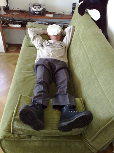 The rest I bought at the mega supermarket. Even after a long weekend of buying and assembling the house is still rather empty, but at least I could finally rest down on my own coach with my own home-brewn meal. Hehe, feels good, ain`t no place like home.