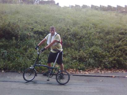 Biking home from work with my Italian colleague Sergio. Check out the towel.