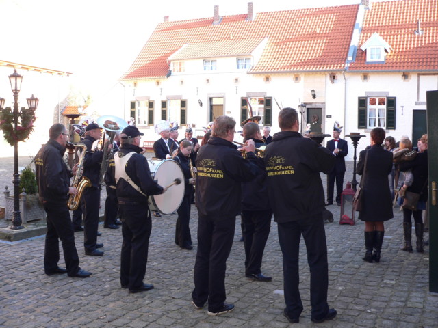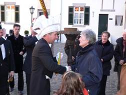 Another medal for mum! When my mum was shaking hands at her reception at the Biesenhof for the 'pro ecclesia' medal, the local carnaval society 'de Sjwenskes' and the brass band 'Beesehofkapel' paid mum a surprise visit.